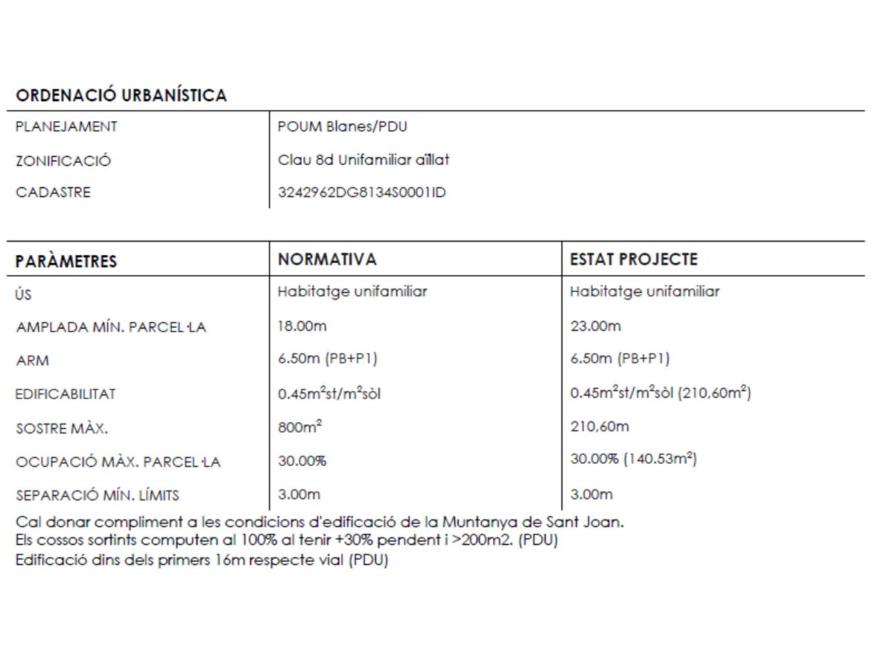 - Altura reguladora máxima: 6,50 m; Planta Baja más 1 Planta Piso