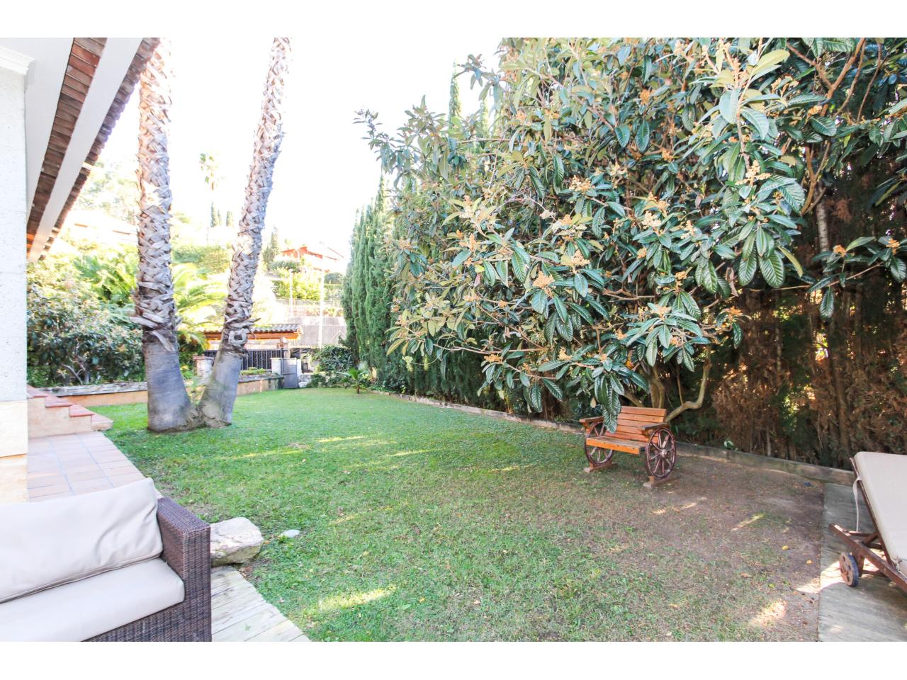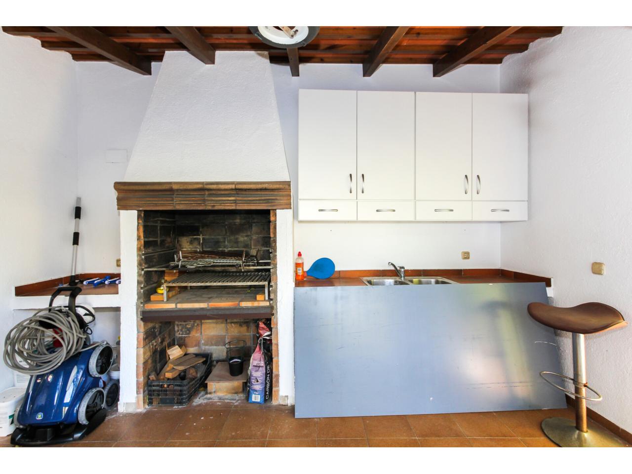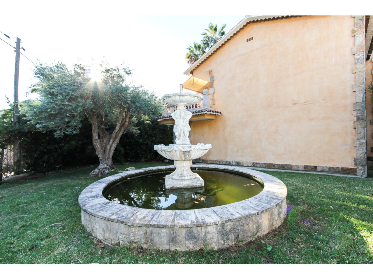 - Zona de relax con cocina, mesa, césped e incluso una fuente de agua impresionante.