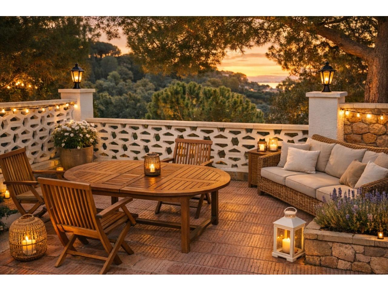 La propiedad cuenta con un magnífico jardín mediterráneo con amplias terrazas, árboles de mandarina, dos fuentes decorativas, solárium y zona de barbacoa, ideal para disfrutar del clima de la Costa Brava durante todo el año.